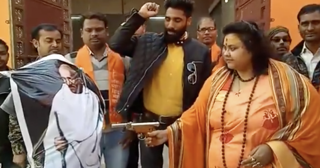 In May 2019, Pooja Shakun distributed knives to minor girls on Savarkar Jayanti. In January 2019, Pandey shot at an effigy of Mahatma Gandhi and raised slogans in support of Godse. She later set the effigy on fire. While the BJP dismissed its association with Pandey, she regularly interacts with leaders of the party like BJP MP Sadhvi Pragya and the Madhya Pradesh chief minister Shivraj Singh Chauhan. Despite her open call to murder Muslims on multiple occasions, the police in UP is yet to act against Pandey.