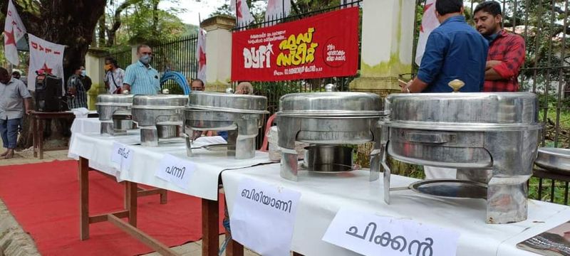 The DYFI conducted a free buffet on the streets of all district headquarters across Kerala serving all sorts of food that Malayalis enjoy, including beef, mutton, chicken and pork. At some centres, 'halal' boards were promptly displayed.