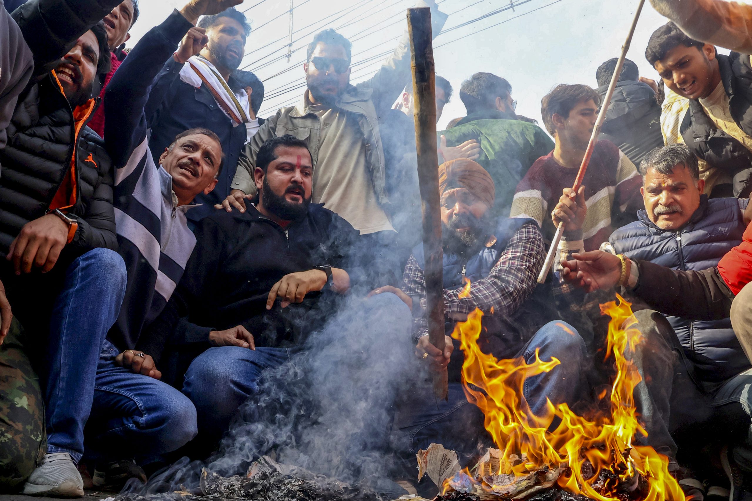 A December 2025 protest over the medical admission list at Shri Mata Vaishno Devi Institute of Medical Excellence. The institute, in Jammu, India, lost accreditation after more Muslim students cleared a competitive exam than Hindu students. Photo: PTI