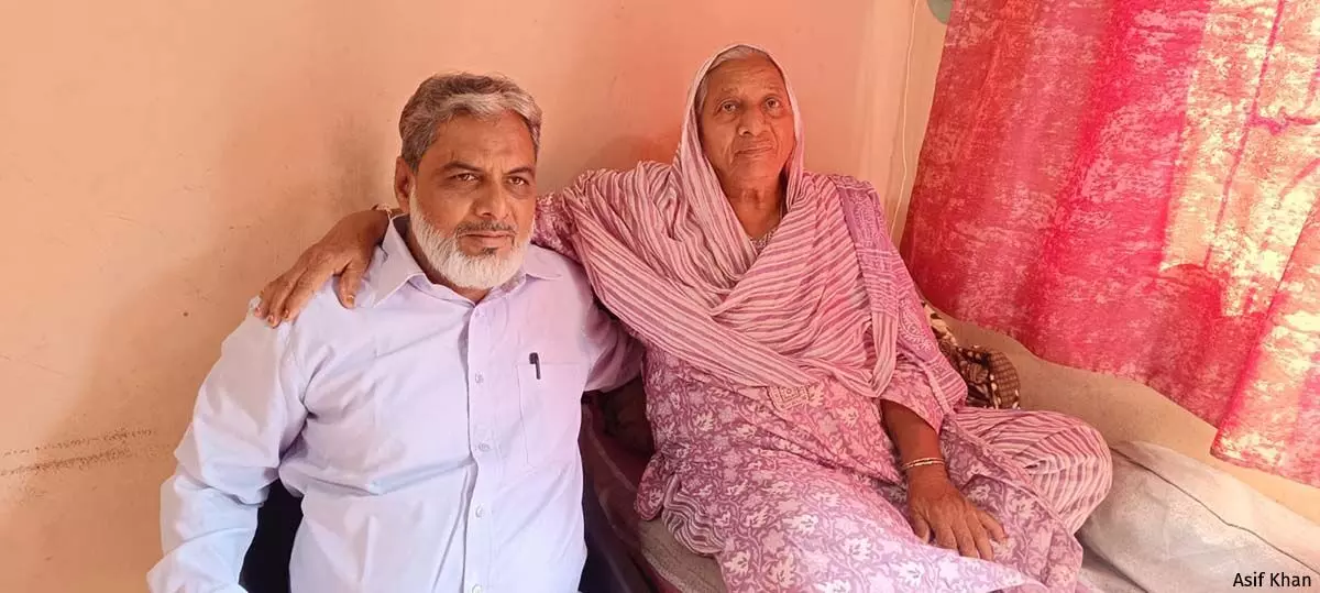 Asif Khan, 52, with his mother Husna Bano at home in Jalgaon, Maharashtra. He worked as a civil engineer in Mumbai before his arrest in 2006. Photo: IndiaSpend.