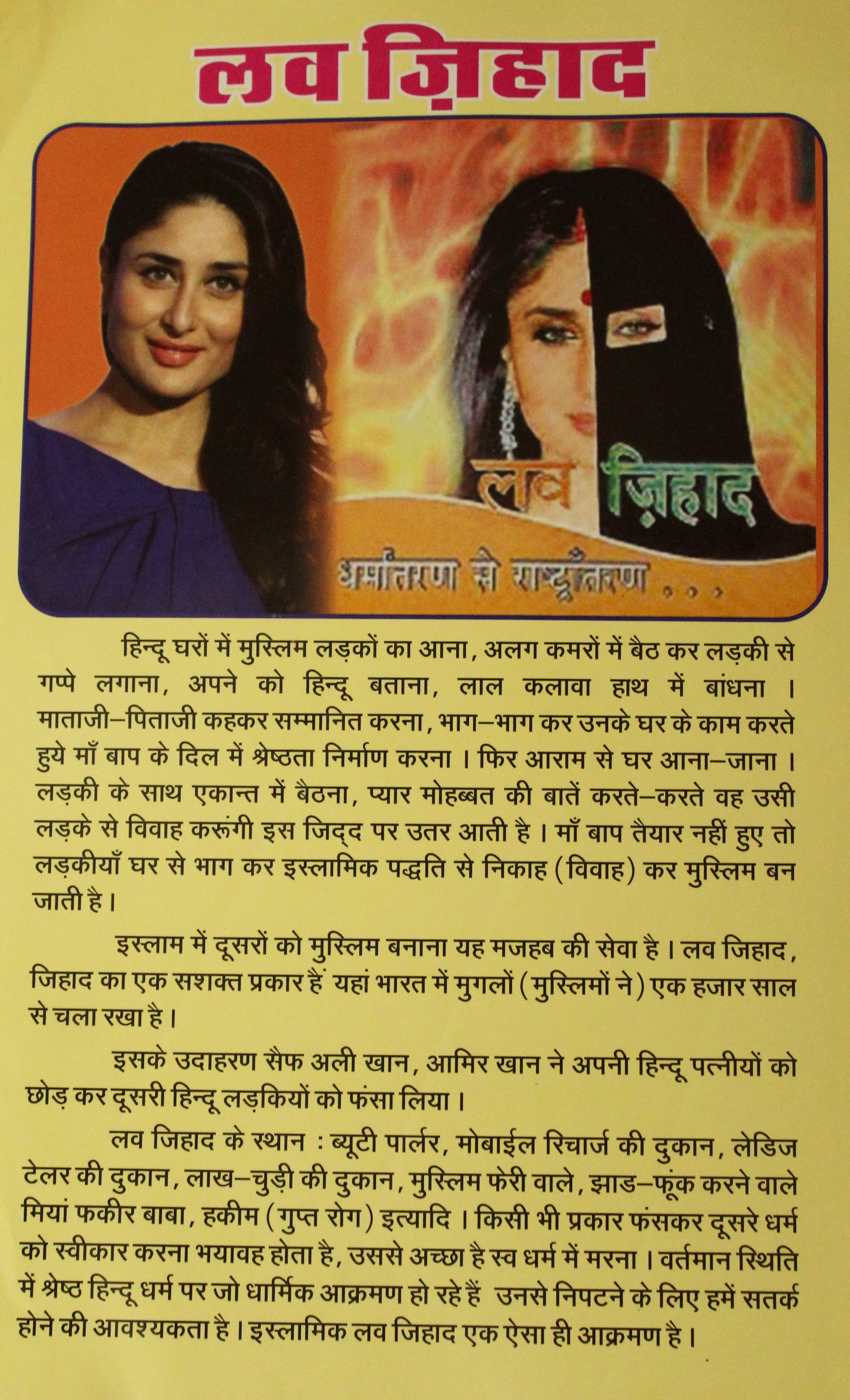 “The reason for using Kareena Kapoor Khan’s case [as an example in the pamphlet] was to make these kids, who idolise all the Khans [referring to film stars], understand that love jihad is a trap,” he added.