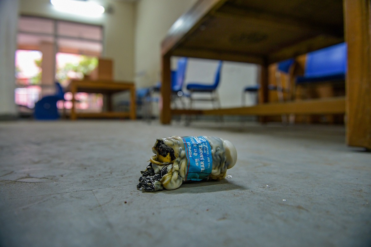 A used tear gas shell in the Jamia library. Photo: PTI