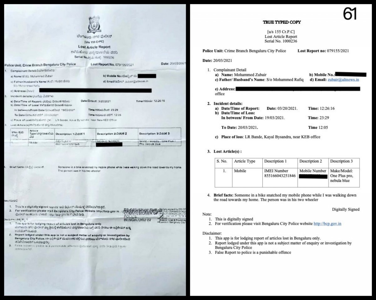 Notably, when the police asked Zubair to hand over his mobile phone which he had been using in 2018, he informed the police that the said device had been lost. His lawyers also shared a copy of the Lost Article Report filed on March 23, 2021. However, ignoring this evidence, the CMM's order said that "Nothing was found on record to show that any mobile phone of the accused was lost, although the said plea has been taken now in the present application."