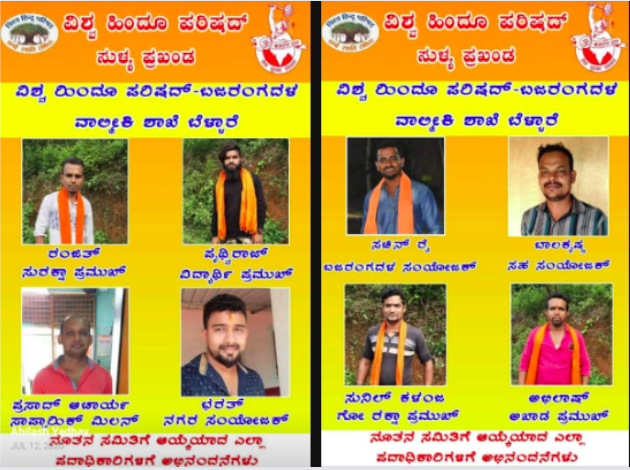 Posts circulating on social media have identified Abhilash Bellare as the Akhada Pramukh of the Vishwa Hindu Parishad-Bajrang Dal's Valmikhi Shakha at Bellare, Sunil Kelanje as the 'Gau Raksha' Pramukh of the same outfit, and Ranjith as its Suraksha Pramukh. The Wire has not been able to confirm whether the three held these positions but has confirmed that all eight were indeed members of the rightwing outfit. The two organisations, VHP and Bajrang Dal, are understood to function as a single composite unit in the area.