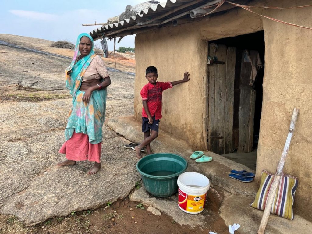 He and his family members scampered to store water flowing from their thatched roofs on a rainy day. “There is no drinking water here. We were promised tap connections. Taps have come, but there is no water. There is one dirty pond in the village but we can’t drink that water. We have to go almost two kilometres to get potable water,” said Ranthi’s wife, Phoolo.