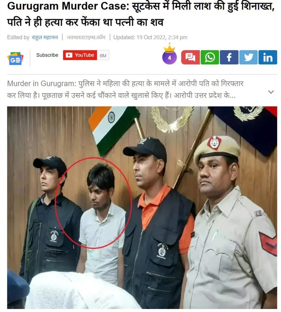 Upon doing a subsequent keyword search, we found a news report by Navbharat Times published on October 19, where the deceased had been identified as Priyanka and the accused was named Sunil, her husband.