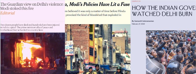 In London, The Guardian ran an article titled “Modi stoked this fire”. The Times (of London), reported that “Hindu mobs threaten to purge Delhi of Muslims”.