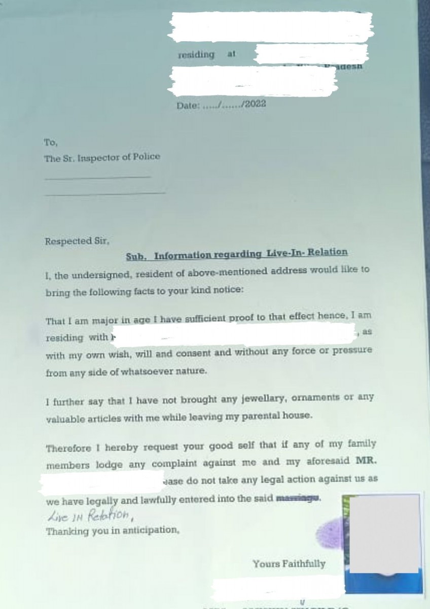Smriti has not only refuted her family's claim that she is a minor, but had also written to the Superintendent of Police about their case, admitting on stamp paper that they have entered into a live-in relationship out of their own free will.