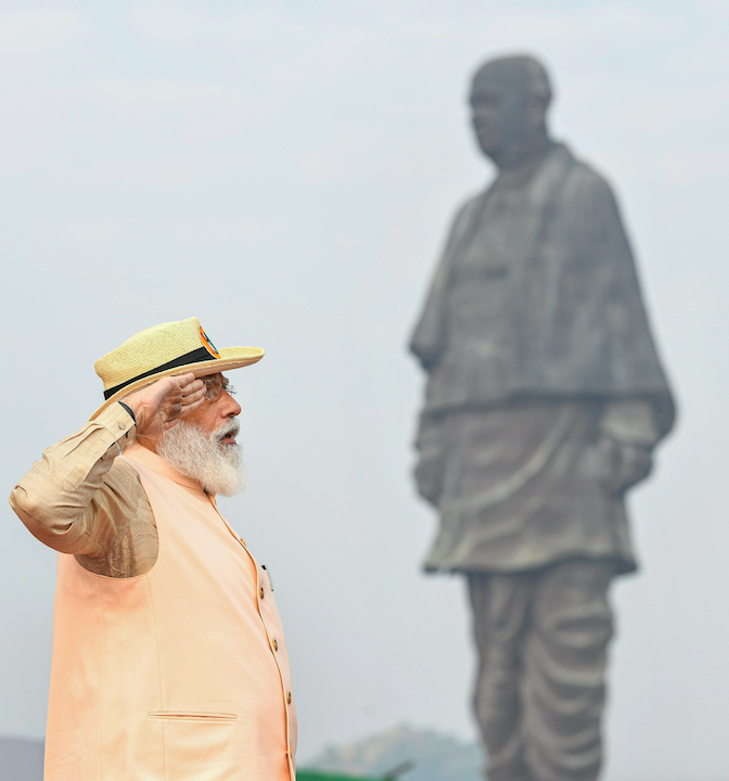 PM Modi at the Statue of Unity in Gujarat. Photo: PTI