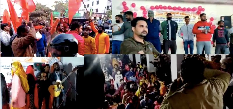 The right wingers then led a series of slogans including 'Jai Shri Ram', ‘Sanatan Dharm ki Jai’ (Long live Hinduism) and ‘Adharm ka naash ho’ (May the irreligious be destroyed.)