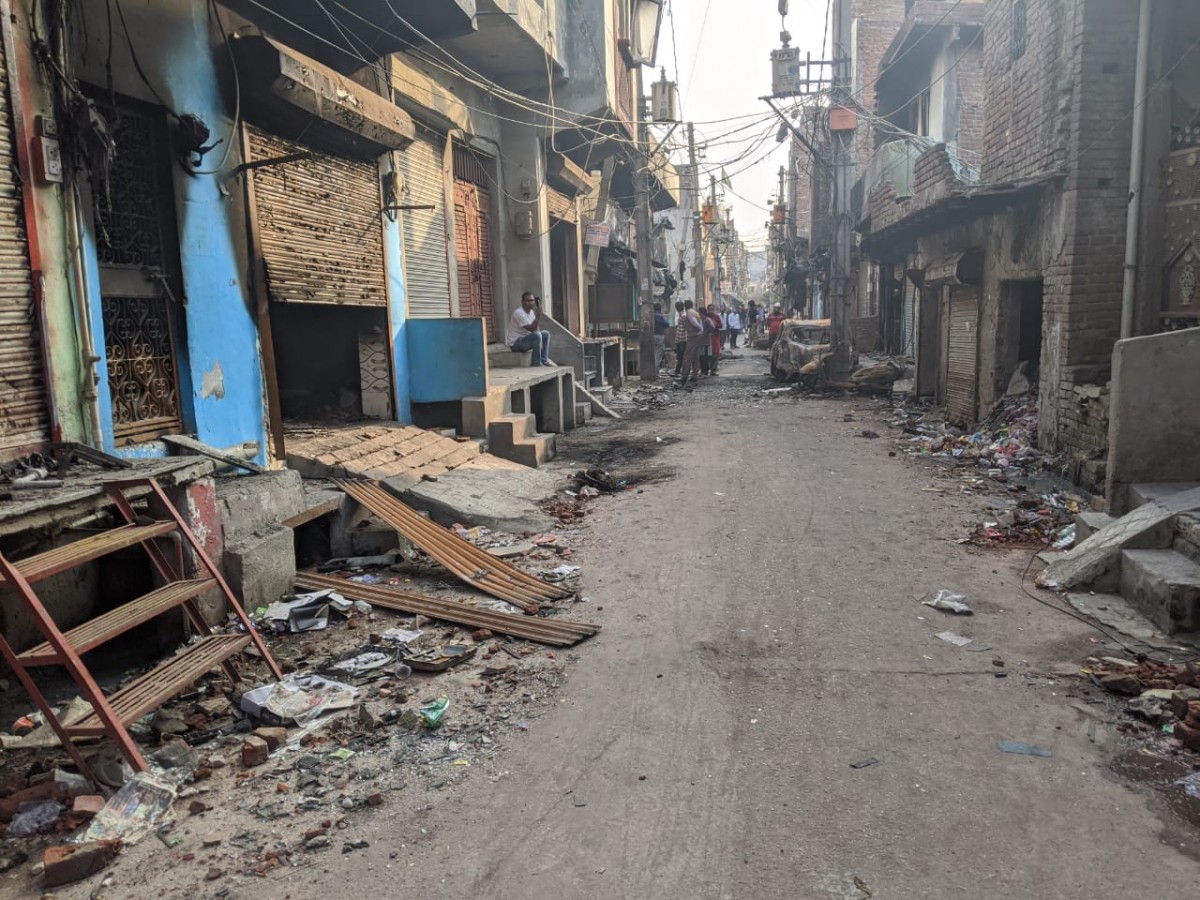 The lane in Shiv Vihar where all the shops and homes have been destroyed. Photo: Kabir Agarwal