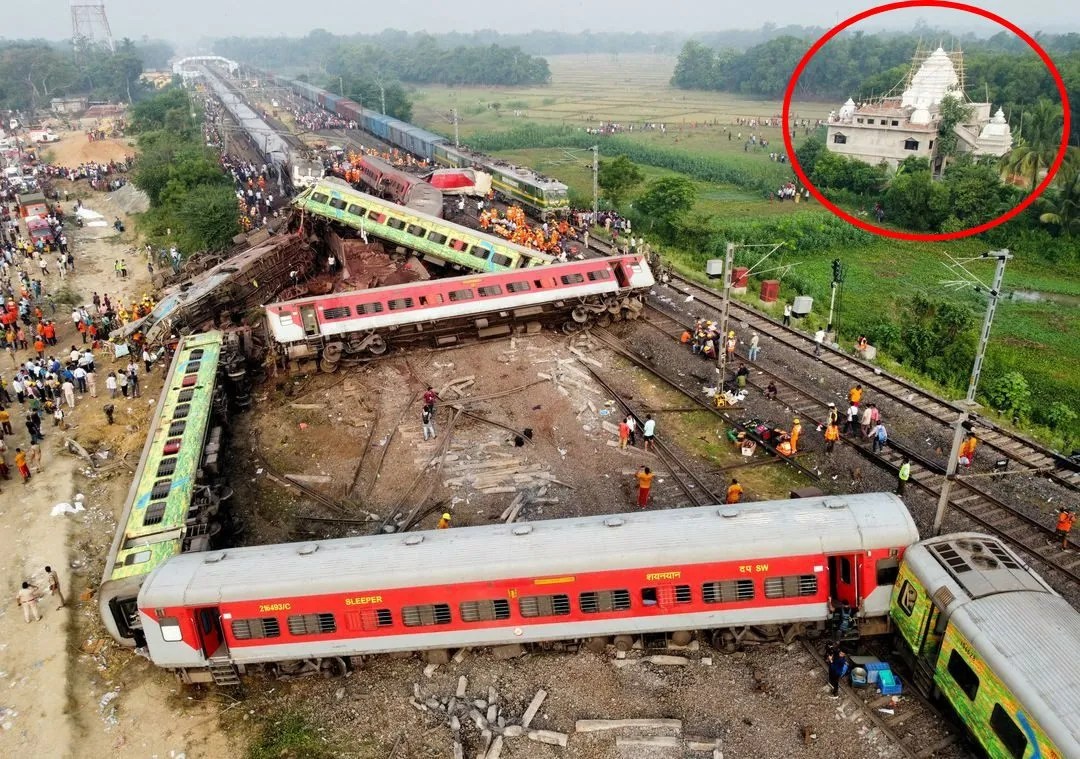 Upon a closer examination of the spot from different angles, we found that the white structure seen in the viral image resembles a temple and not a mosque. The following image was used in a Reuters report titled, “Deadly Indian rail crash shifts focus from new trains to safety“. We have circled the structure on the image: