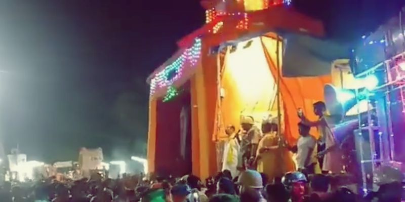 The people in the procession reportedly played loud music, danced with sticks and weapons in front of the Jamia Masjid as it proceeded for the immersion ceremony.