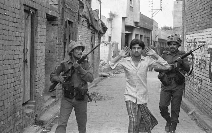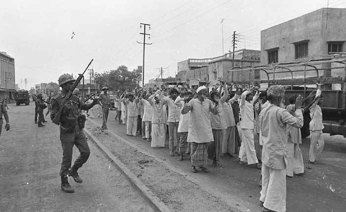 People were ordered to step out of their houses and then lined up on the main road. They were told that ‘bade sahib’ wanted to talk about ‘aman and chain’ (peace and harmony). Hundreds were then bundled into trucks and sent off to different locations. Nobody sitting in the trucks had even a faint idea about what was in store. Since the atmosphere was communally charged, some were concerned about the families they had left behind. Hundreds were sent to police stations and jails for about three weeks. In custody, they were flogged with batons not only by the police but also by the prisoners.