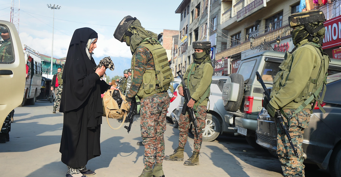 A woman being checked during a surprise check in Srinagar in the aftermath of the civilian killings. Photo: PTI