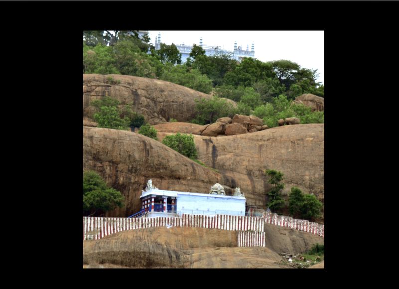 The Subramaniya Swamy temple was built in the eighth century during the reign of the Pandyas at the foothills of this monolithic hillrock whereas the dargah was built in the 17th century at the top in the memory of Sikkander Shah, the last Madurai sultan. The Kasi Viswanathan temple is also located close to the top of the hill but on the other side of the dargah.