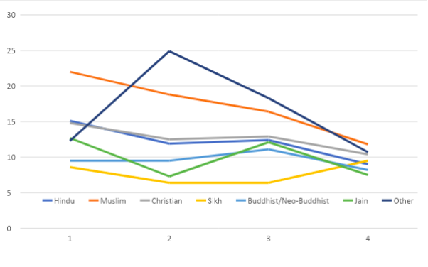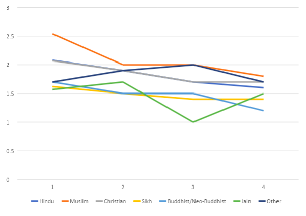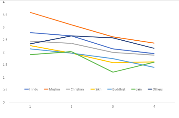 In Figure 2, we can observe that the wanted number of births per woman across the religious groups is way below the replacement level of fertility.