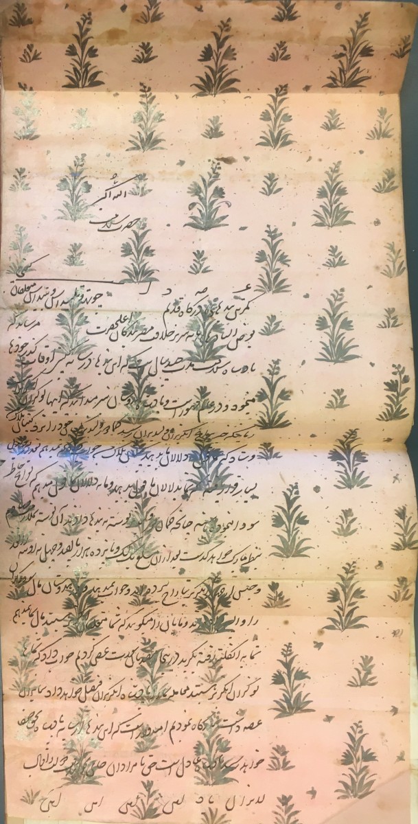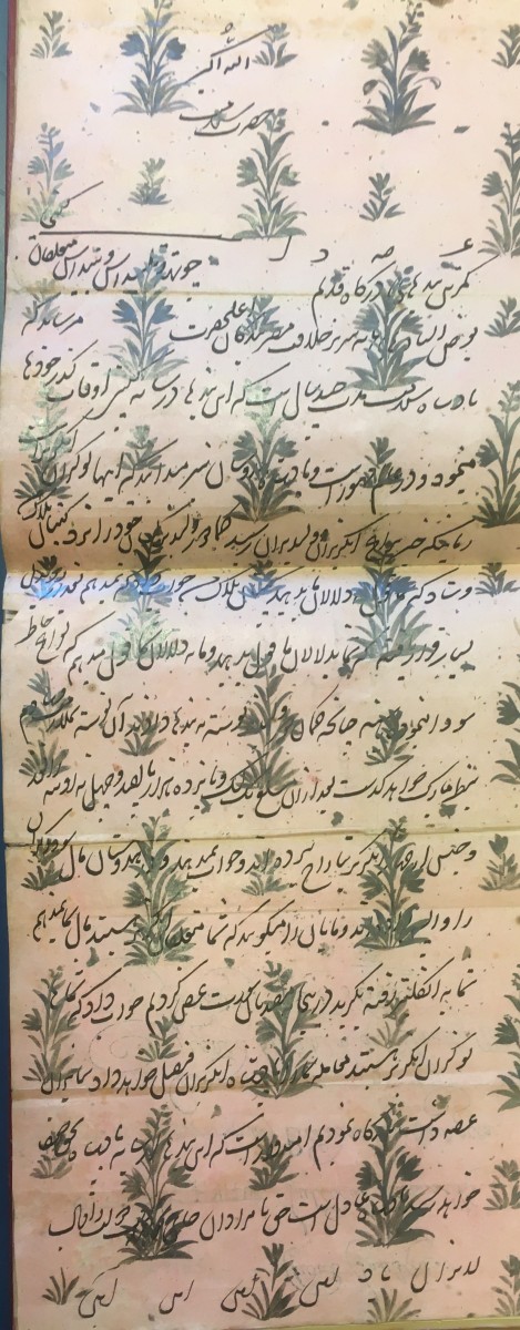 The petition is headed Allah-o-Akbar, which is somewhat unusual. It is written on behalf of Cauth, Tulsidas and Benidas, humble merchants of Surat, to the Padshah and other high authorities at the Foot of the Caliphate (pa-yi khilafat) in England. They state that the Padshah must be aware that for some years now, the humble petitioners have been living under the protection of the Company, as this is a fact well-known to everyone. The Padshah of Hindustan (as they term the Mughal emperor) too knows that they are the servants of the English (naukaran-i angrez).