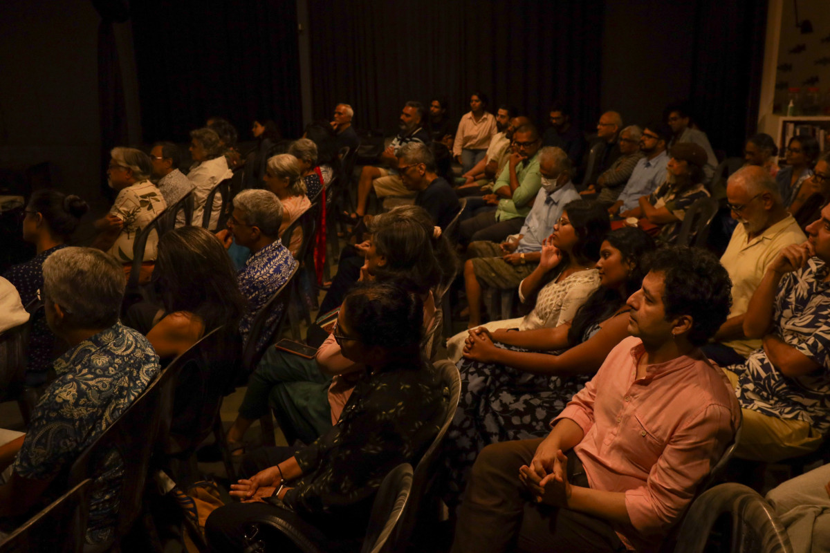 The audience at the Museum of Goa, Pilerne, during a conversation between historian and author Manu S. Pillai and journalist Seema Mustafa on the syncretism of religion. Photo: Nilankur Das