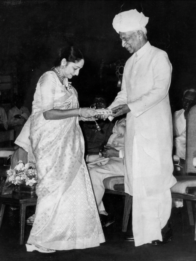 Arundhati receiving the National Film Award for Chhuti from President Sarvepalli Radhakrishnan, 1967. Courtesy: Arundhati Devi Family Archive.