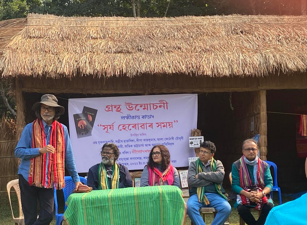 Launch of a book by Lakhikanta Rabha, a crew of Badungduppa, on the opening day of the festival. Photo: Sangeeta Barooah Pisharoty/The Wire