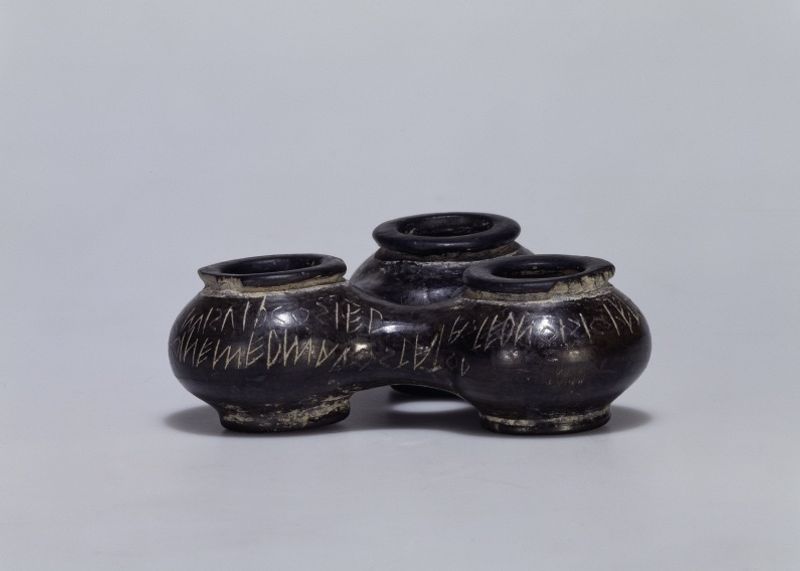 The inscription is tripartite and, despite only being three lines long on three little pots about 3.5cm tall, it has attracted a deluge of attention in the secondary literature. We are interested in the last clause of the last sentence which reads like this: