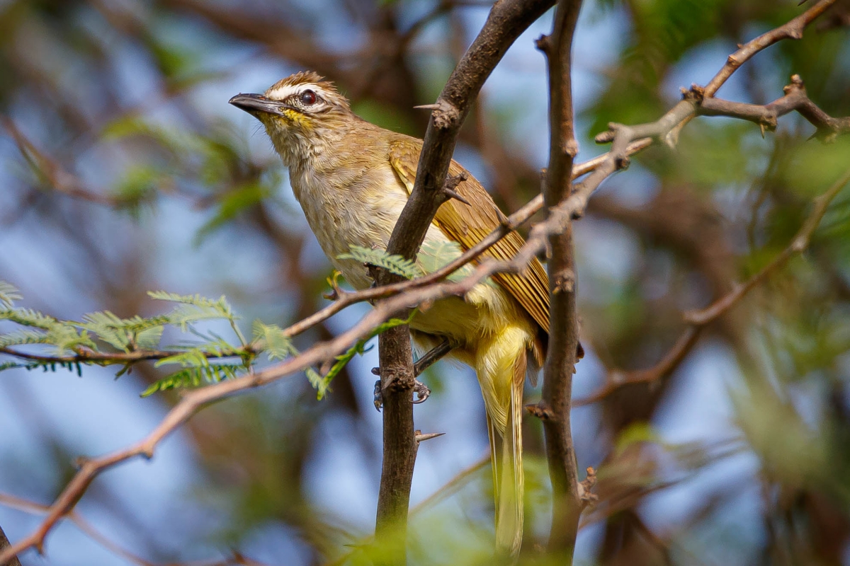 My favourite among these more-commonly sighted bulbuls is the white-browed (you will find them only in peninsular India though). With its camouflaged olive plumage, you will hear it before you see it: this crestless bulbul has a delightful gurgling call which reminds me of trickling water. And once you do sight it, you’ll not forget their distinct white eyebrows that stand out from the rest of their dun body.