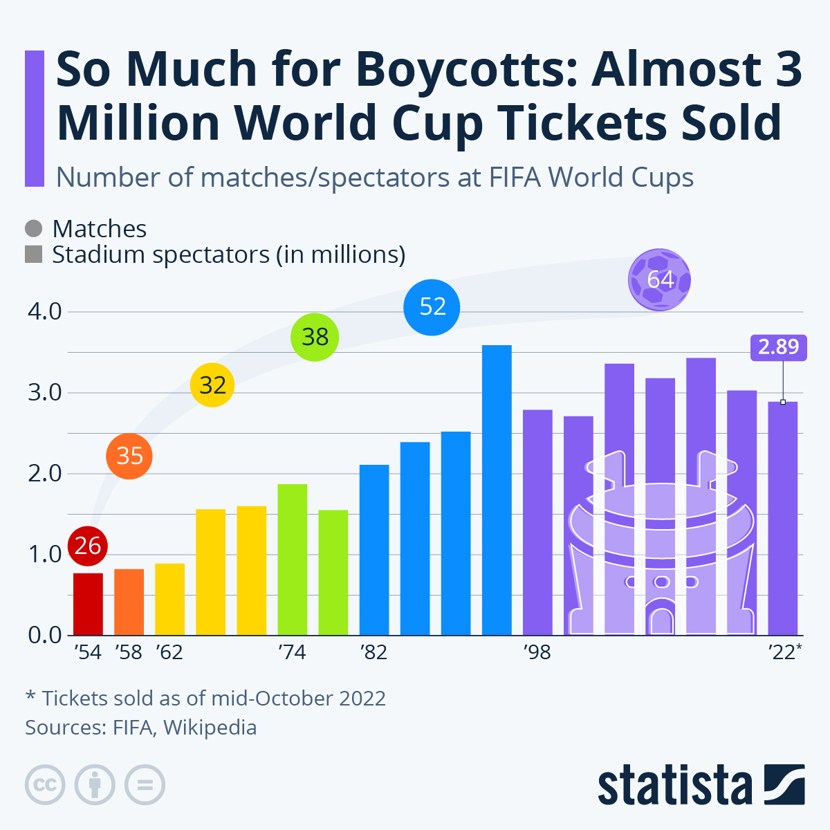 Chart | So Much for a Boycott: Almost 3 Million Tickets Sold for World Cup in Qatar