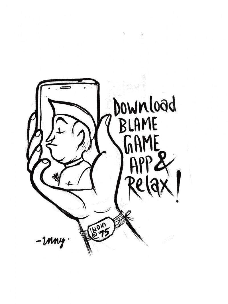 In contrast to this broad temporal view of the ‘anniversary’, other artists use an ironic eye to unpack contestations anchored in the contemporary, as in E.P.Unni’s sardonic cartoon on the fad of bypassing accountability in the times of Digital India.