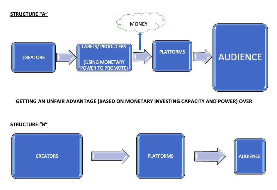 What we believe this indicates is that as long as investment from executives is an important part of how music is disseminated, it will be structurally almost impossible to create a system of open and equitable access (we refer to both access to those who wish to create and those who wish to appreciate).