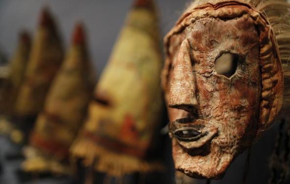 A rare antique tribal mask, Kachina Hapota, circa 1910-1920, revered as a sacred ritual artefact by the Native American Hopi tribe in Arizona is displayed at the Drouot auction house in Paris before auction, December 9, 2013. Credit: Reuters/Christian Hartmann
