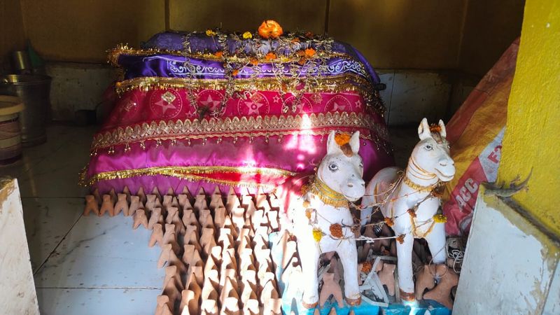 The Manik Pir mandir that’s close to his house predates anything even his grandmother has known. Inside the small, modest tomb-like building that has seen better days lies a curious assortment of clay horses, symbols of Manik Pir’s equestrian exploits.