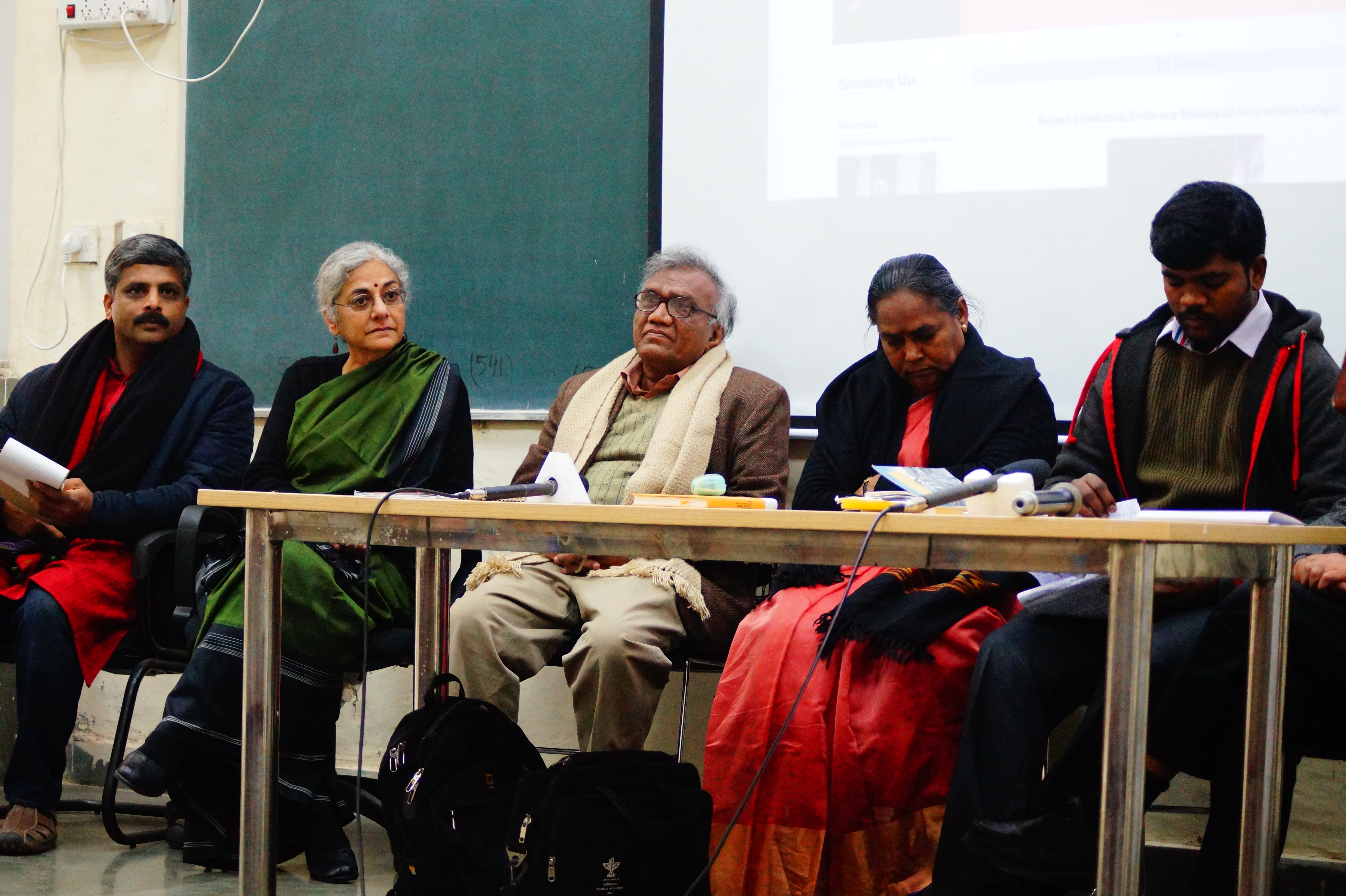Prof Gopal Guru of JNU took this argument further, mentioning the existence of various kinds of asymmetries in any classroom – gender, caste, class, etc. According to him, bridging this gap is only possible by discussing different experiences, not by ignoring the gap completely.