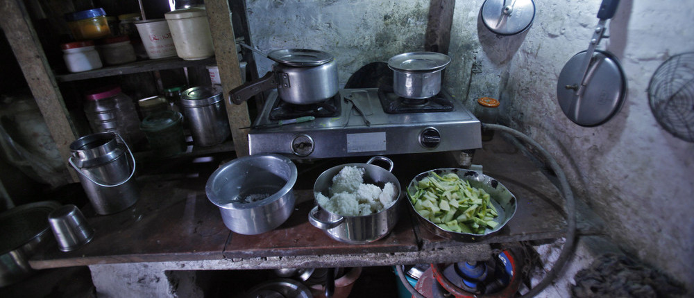 A kitchen is pictured in a house at a slum in New Delhi July 29, 2013. Photo: Reuters/Anindito Mukherjee
