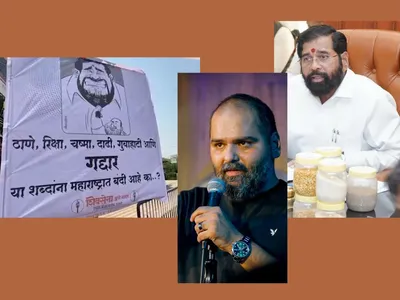 Along with a caricature of Shinde's, the poster asked if the words “Thane, rickshaw, chasma, dadi, Guwahati, and gaddar” have been banned in the state. This is a reference to Kamra's show and the reaction to it.