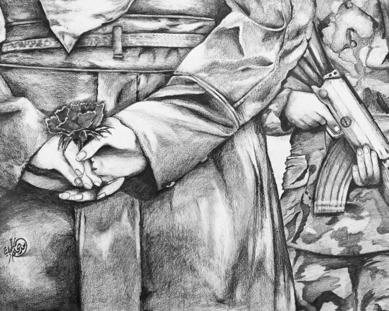 Alkurd has already been a part of several exhibitions in Europe featuring young Palestinian artists. But he does not see himself as a spokesperson or activist, just as a young person, and a young artist. He says, “Right now my work is about peace and justice. But I want to travel, to Europe, to India. I have never been able to travel because of border control, although I have been issued visas. But I have hope that I will. I want to take photographs in India – there is so much colour and life there. And when I do that, my work will change and I will change, I will make art about other things.”
