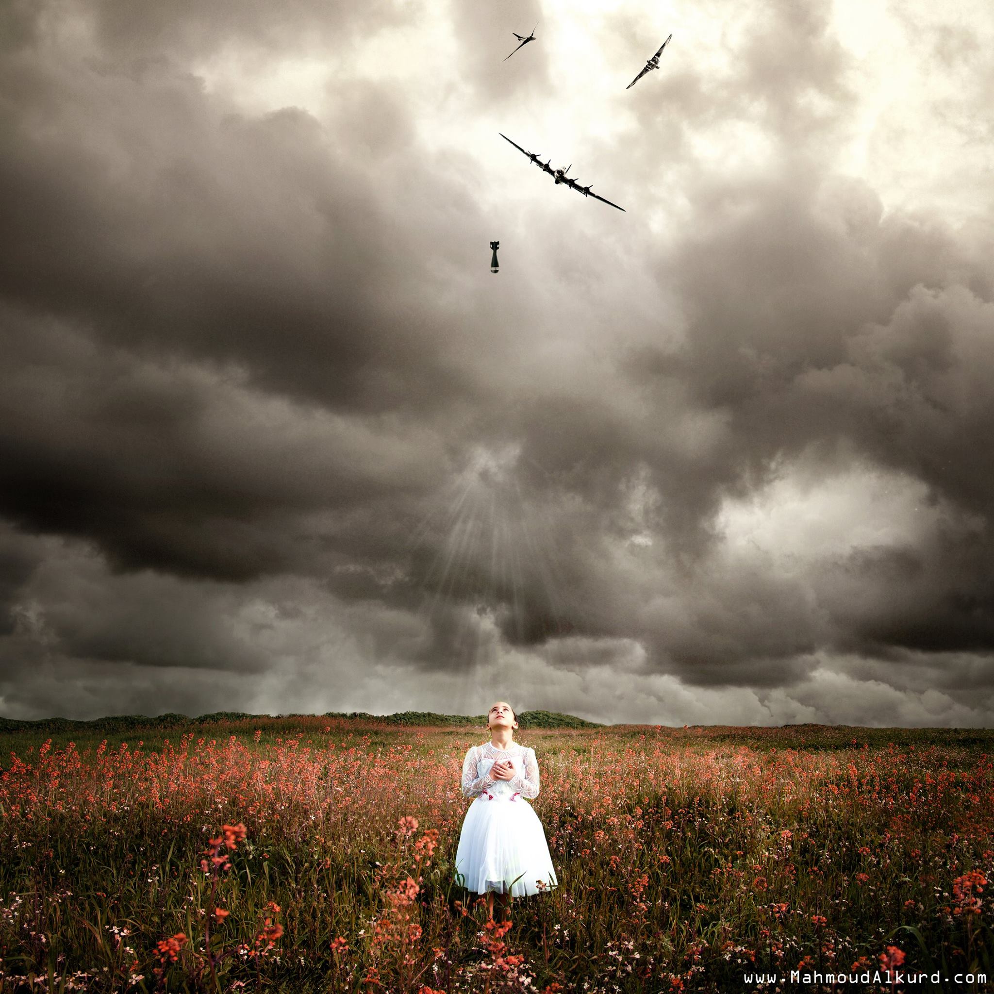 Prints of his artworks plaster the wall behind him as he speaks with me on Skype from his home in Gaza. Now 23, Alkurd bought a camera and began taking photographs as he was finishing his undergraduate degree in English literature at Al-Azhar University. Shortly after, at the end of summer 2014, Israel began bombing Hamas-ruled Gaza in ‘Operation Protective Edge’. Alkurd continued to take photos whenever he could. When a ceasefire was finally announced in August, after 51 days, he found he had a focus, and his journey as an artist began. Over the next three years, he taught himself photography and digital art through YouTube and online tutorials and developed his style.