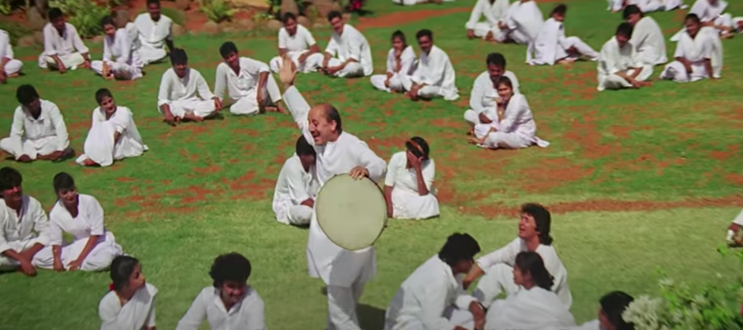 But it is Rahul’s dhol playing which intrudes into song dialogues between Kiran and her fiancé Sunil (Sunny Deol) that highlight his invasion of the family’s space and his insertion of himself between the couple as he manages to rub colour onto Kiran.