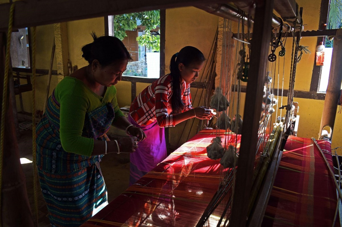 Weaving on a handloom at Topguri village, Chirang district, Assam. Photo: Jignesh Mistry.