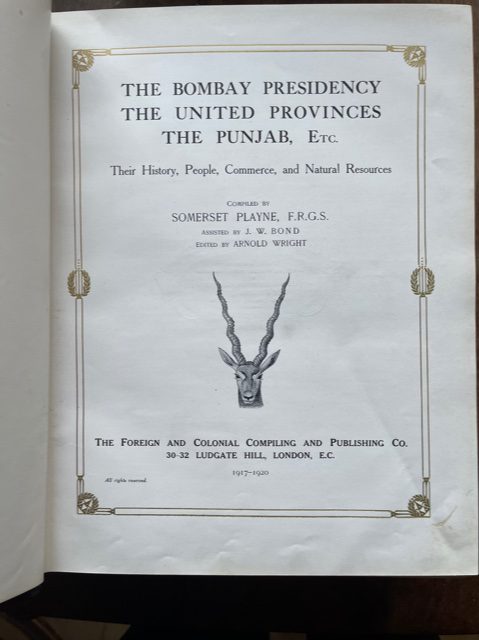 India was a vast arena and afforded enough material for four books. The first book to appear was Southern India: Its History, People, Commerce, and Industrial Resources (1914) followed by Bengal And Assam, Behar And Orissa (1917). Yet another book was to be issued in the same year, but the exigencies of the First World War prevented its publication. Titled The Bombay Presidency, the United Provinces, the Punjab, etc.: Their History, People, Commerce and Natural Resources, it was eventually published in 1920. This hotchpotch agglomeration of provinces reflected the accident of empire. The city of Bombay naturally predominates the book and accounts for over one-third of its 900 pages.