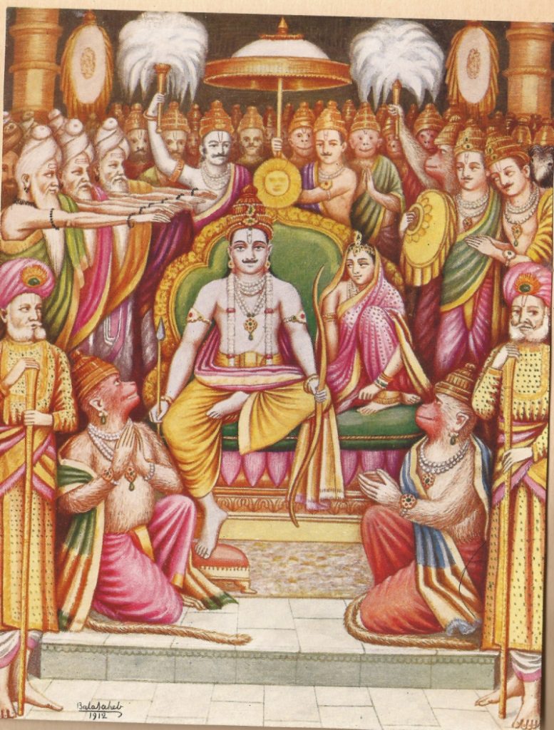 ‘Rama becomes King of Kosala.’ Illustration from Chitra Ramayan (1916), Kannada imprint from British India Press.