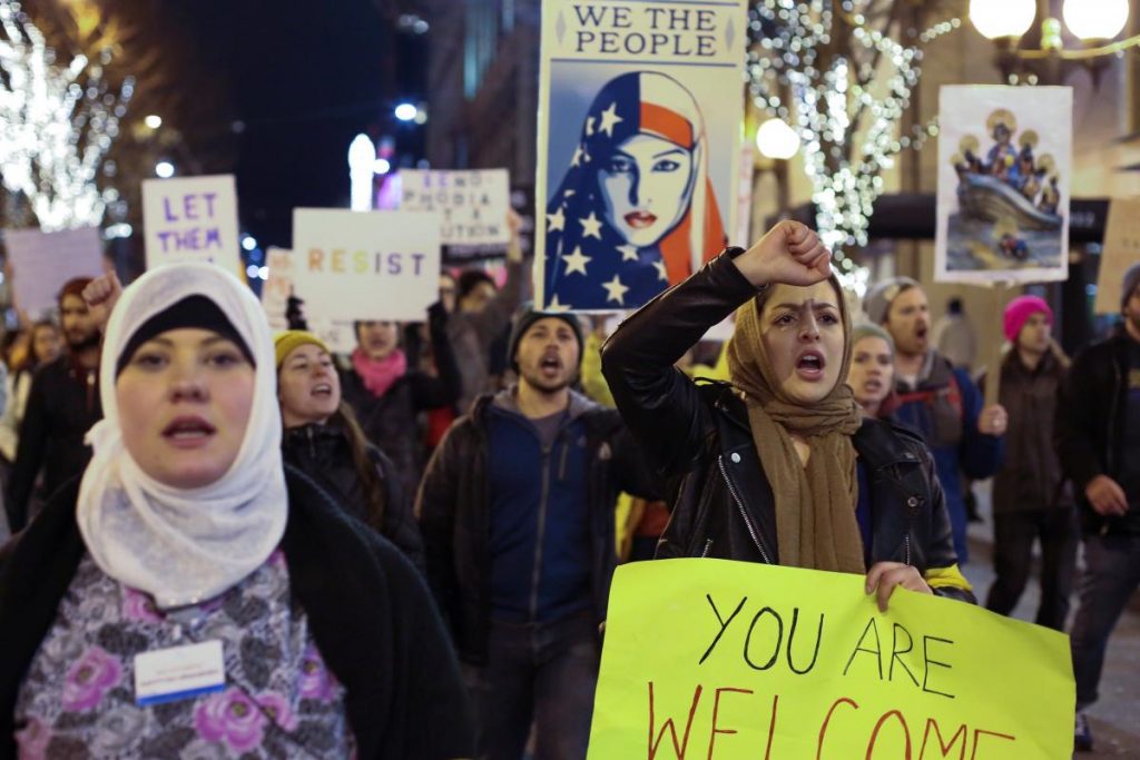 People march through downtown Seattle during a protest held in response to President Donald Trump's travel ban, in Seattle, Washington. Credit: Reuters/David Ryder