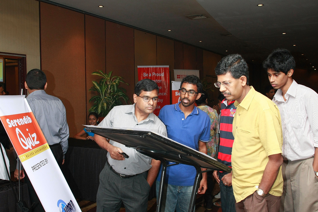A team puzzling over questions at the inaugural Serendib Quiz held in Colombo, Sri Lanka. Credit: Nalaka Gunawardene