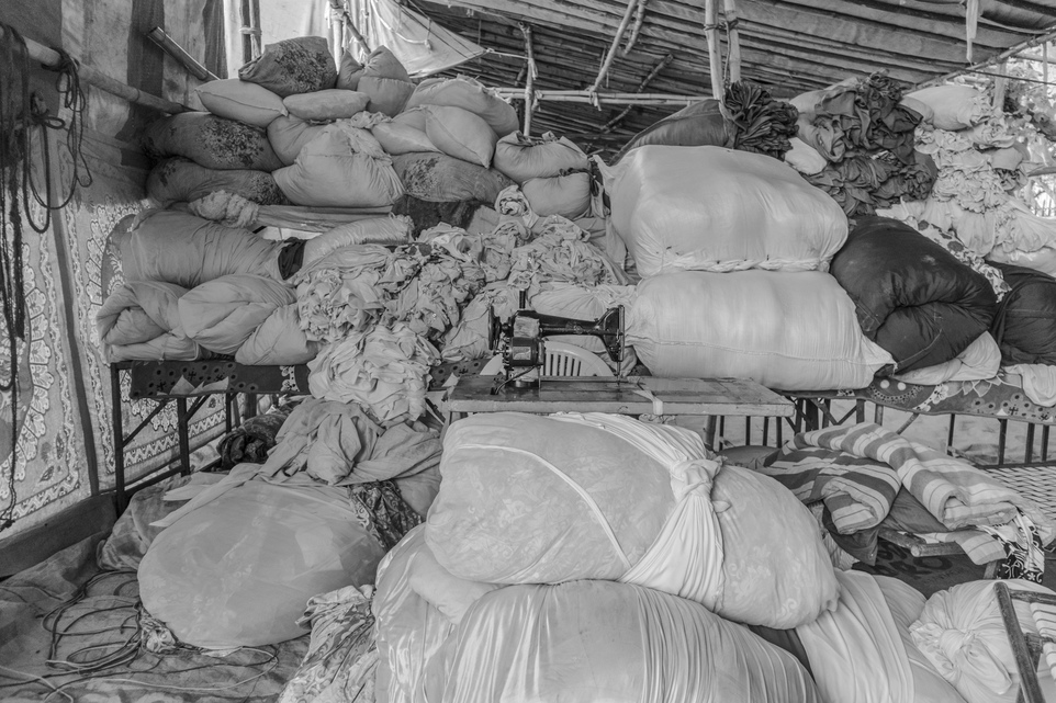 Quintals of fabric await their turn to be stitched and transformed into the stunning decorations that will adorn the grand Pandal.