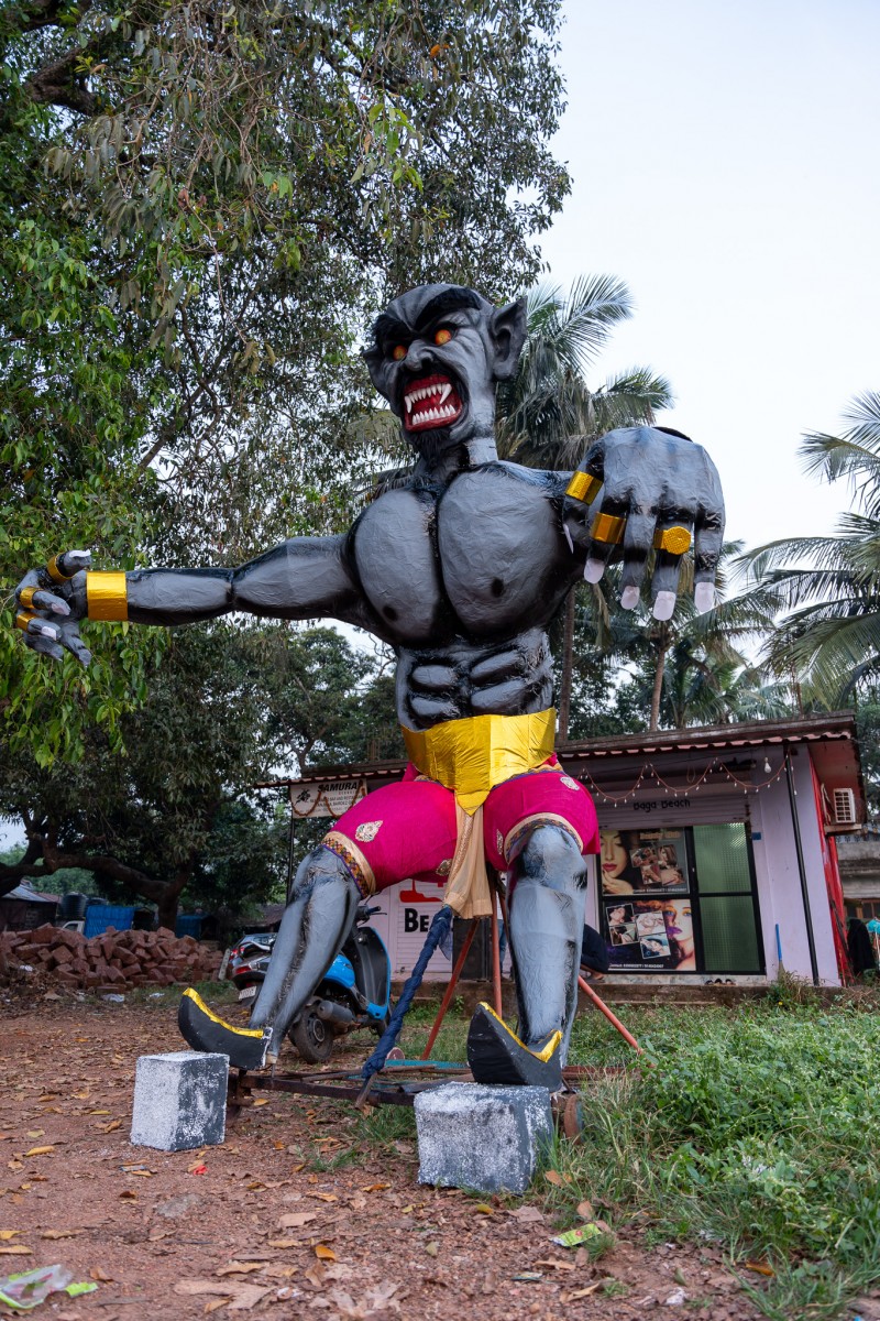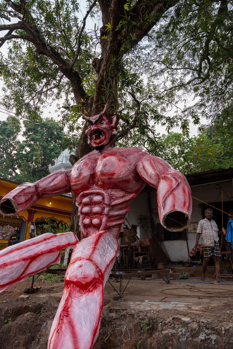 A red demon king under construction outside Parcem municipality office, on the Agarwada-Pernem road.