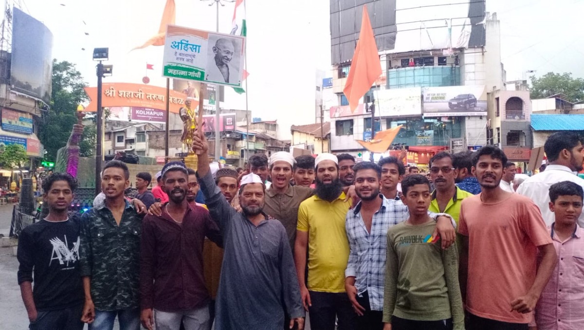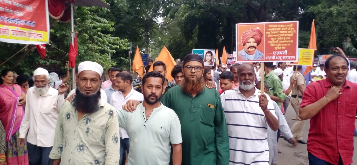 Representatives from the Muslim community participated in large numbers at the yatra. Some are seen carrying a poster of Chhatrapati Shahu Maharaj.