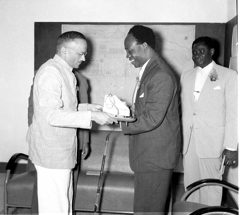 The managing director of the Indian Telephone Industry in Bangalore presents a telephone to the prime minister of Ghana in January 1959. Photo: public.resource.org/Flickr/CC BY 2.0.