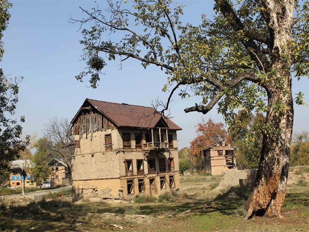 Crumbling edifice: A house left behind by a Pandit family in Kashmir. Photo: Farooq Shah