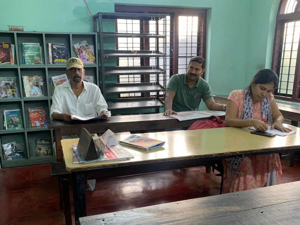 The reading room has a couple of people sitting on the neat benches at 6 pm in the evening – an insurance agent reading the newspapers before he heads home; the salesman from the local chemist enjoying a quiet time reading a magazine; a young student taking notes on current affairs preparing for her PSC exam.