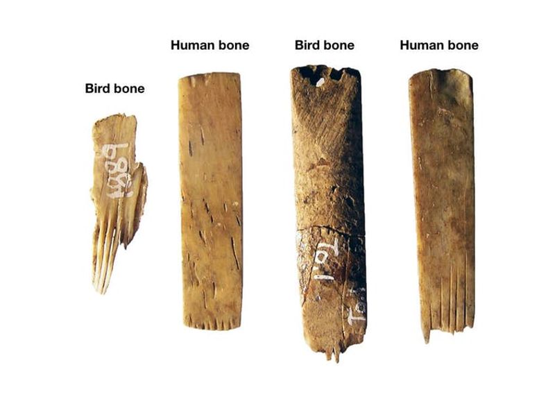 Careful examination also discovered that while two of the combs were made of sea bird bone (such as albatross), the other two were made from the bones of a large land mammal – probably human.